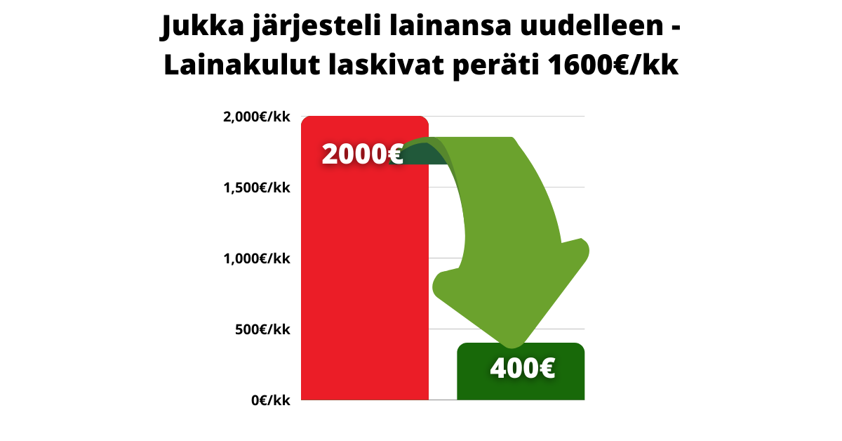 Jukka laski lainakustannuksia peräti 80% yhdistelylainan avulla