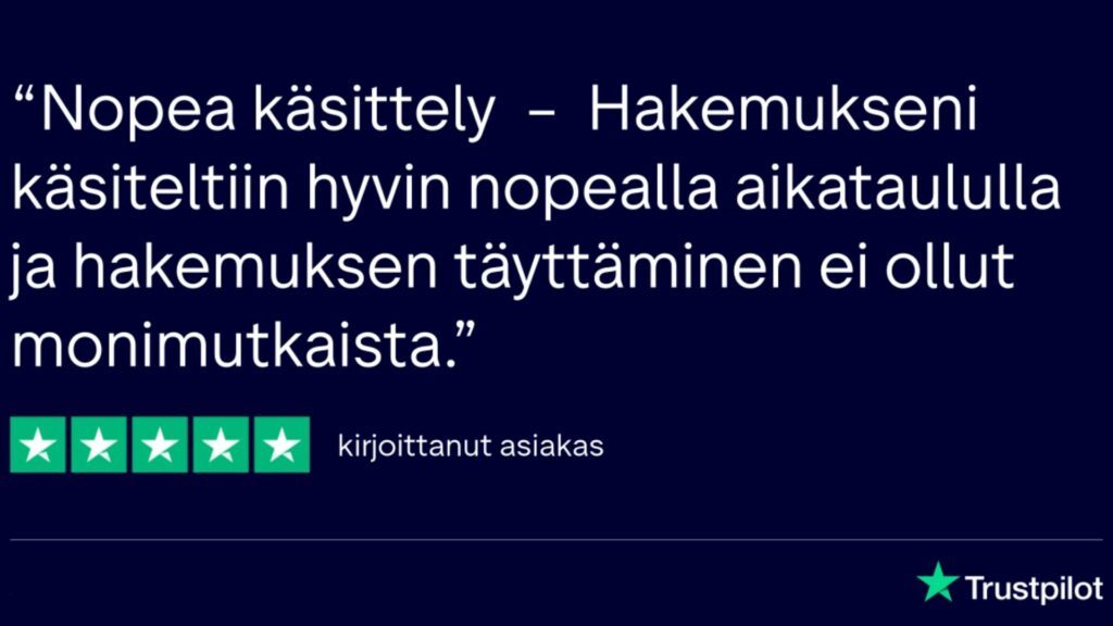 Olemme koonneet tälle sivulle asiakkaidemme aitoja kokemuksia, jotka kertovat, miksi palvelumme koetaan paitsi nopeaksi ja helppokäyttöiseksi, myös ennen kaikkea luotettavaksi ja turvalliseksi.