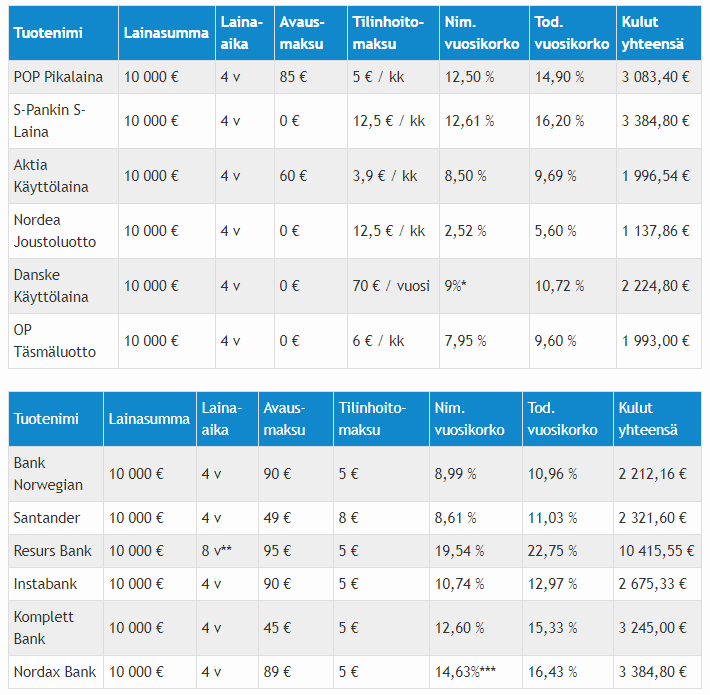 - Saat nopeasti lainatarjouksia eri pankeilta