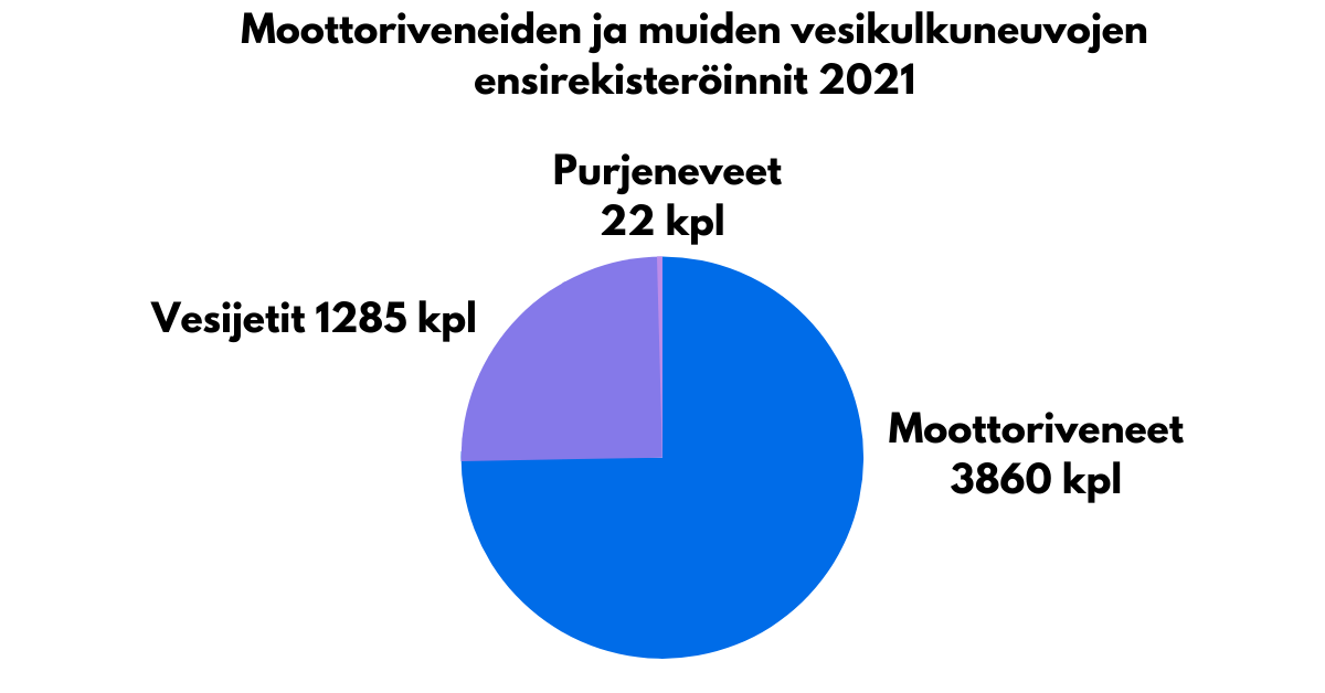 Traficomin uusien vesikulkuneuvojen rekisteröintitilastosta näkee, että vuonna 2021 rekisteröitiin peräti 5167 uutta vesikulkuneuvoa. Suosituin venemalli oli jälleen kerran moottoriveneet, joita myytiin vuonna 2021 yli 3800 kpl. Myös vesijettejä rekisteröitiin hieman yli 1200 kappaletta. Uusia purjeveneitä rekisteröitiin hyvin vähän vai 22 kappaletta, liekö sitten syynä purjeveneiden kallis hinta vai käytettyjen purjeveneiden kova kysyntä.